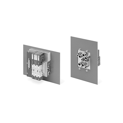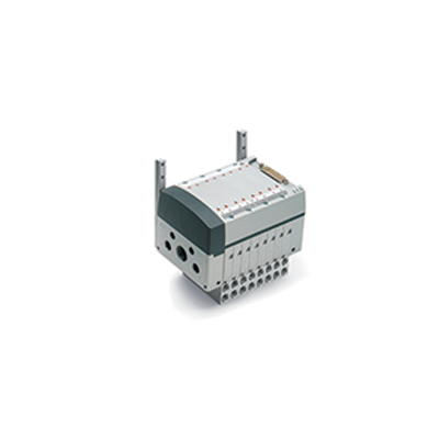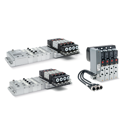 Valve island with integrated Pneumatics and Electronics. Available versions: Individual, Multipole.